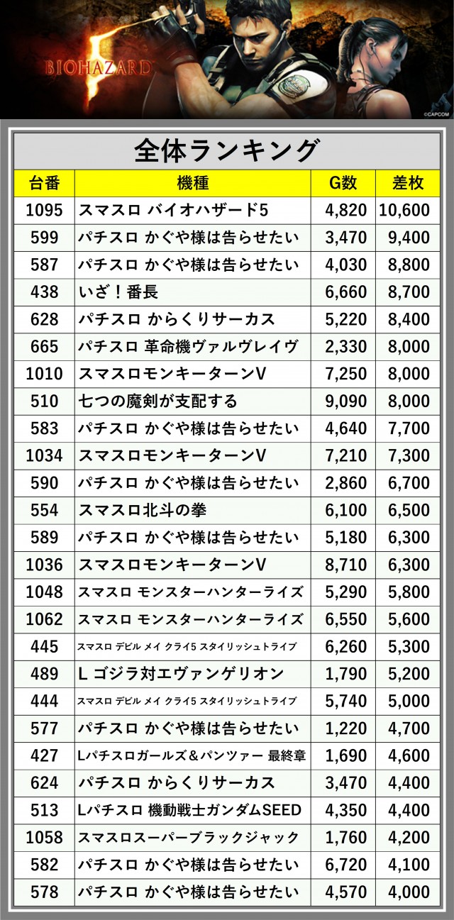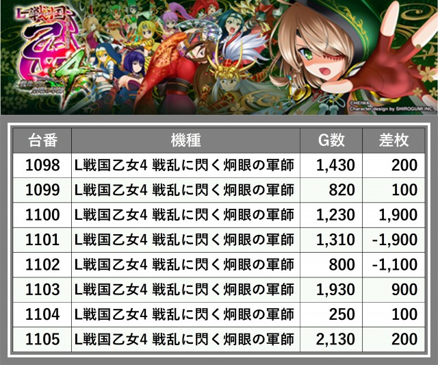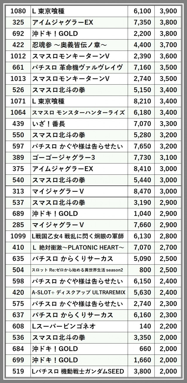 厳選された取材対象機種をはじめ、その他スロット全体から好記録が飛び出した!プレイヤーが楽しんだ1日を下記データにて振り返ってみて欲しい。