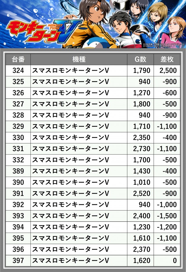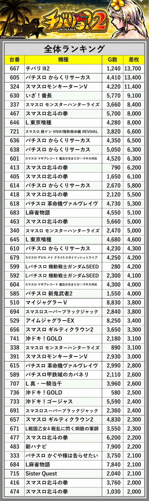 厳選された取材対象機種をはじめ、その他スロット全体から好記録が飛び出した!プレイヤーが楽しんだ1日を下記データにて振り返ってみて欲しい。