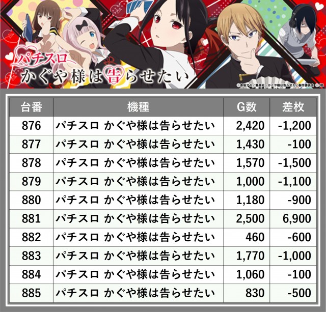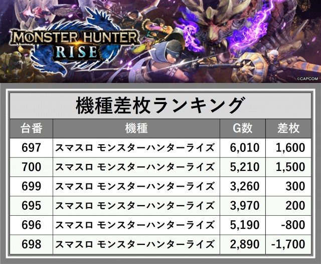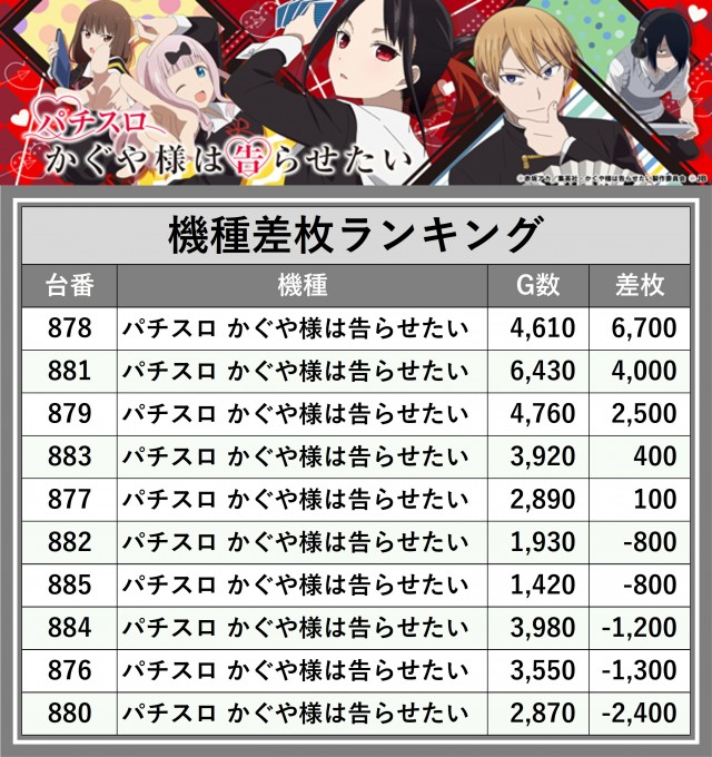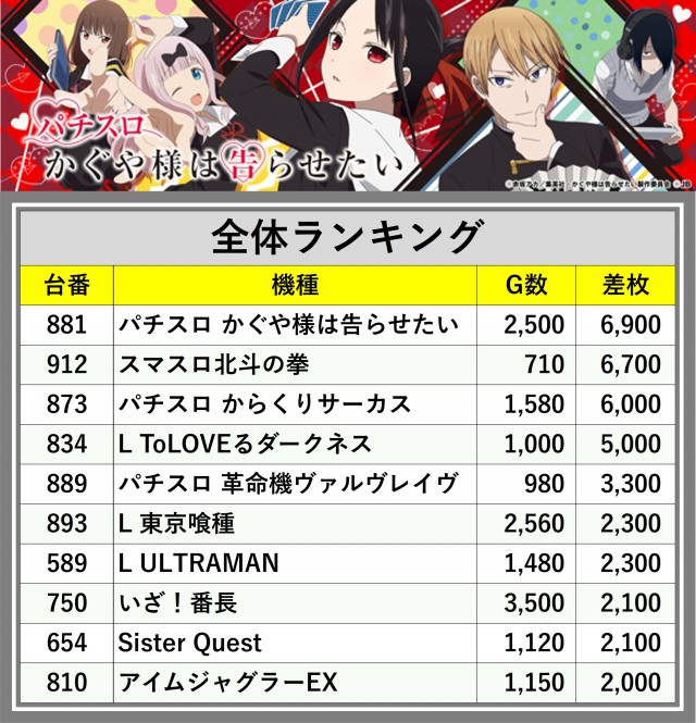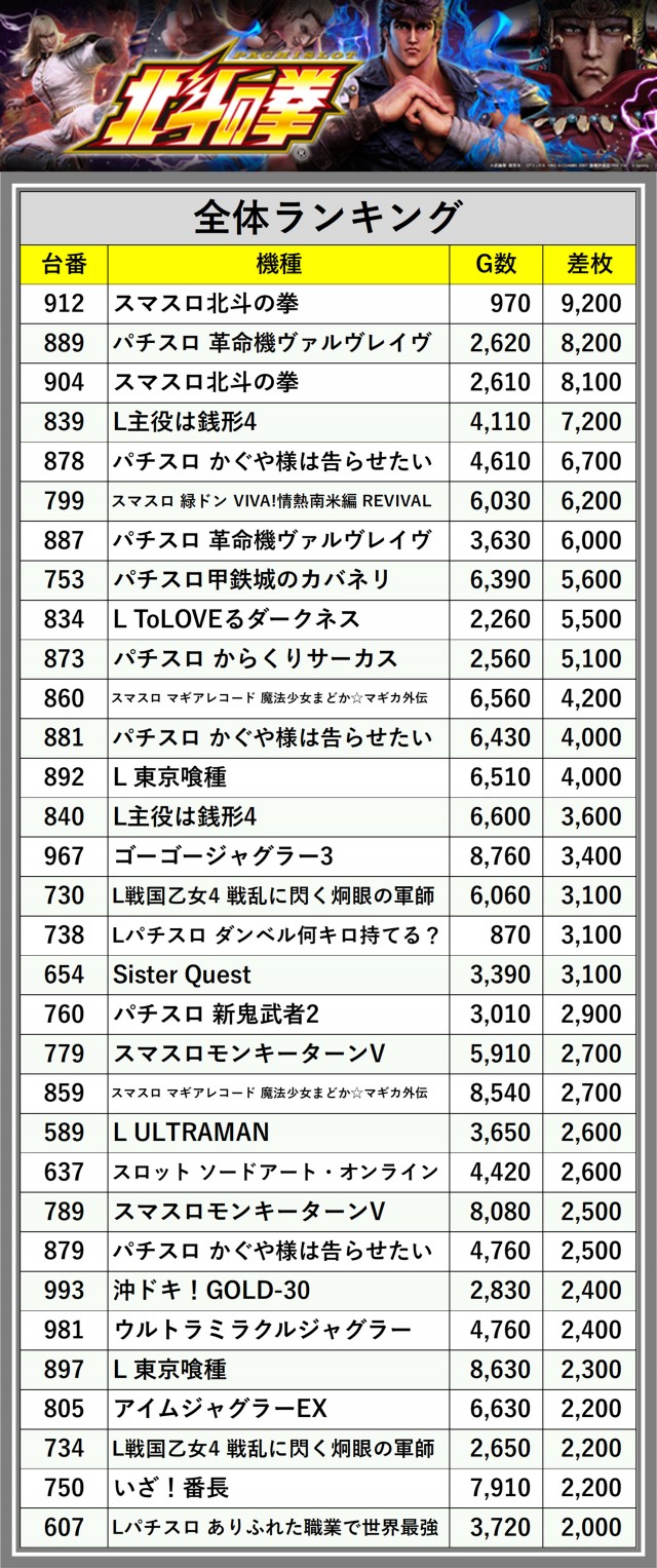 ※差枚数順に掲載しています