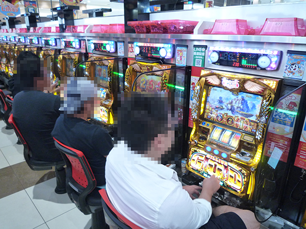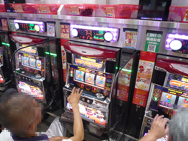 笑顔を浮かべて遊技を楽しんでいるプレイヤーは、ジャグラーシリーズや「熊酒場2丁目店」でも見られ、明るい雰囲気を感じ取れた。