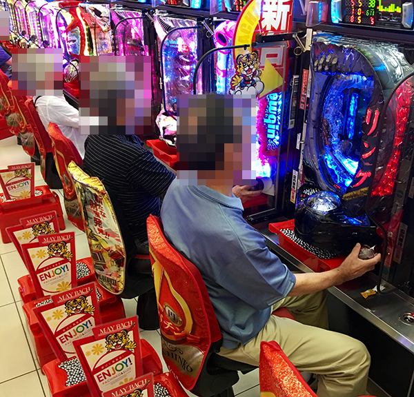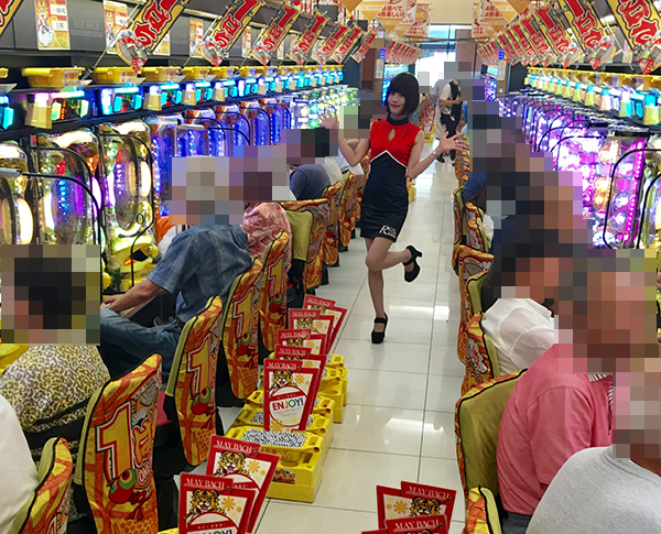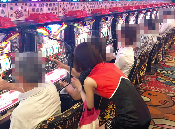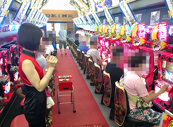 13時をまわった頃、4円パチンコでは海物語シリーズが高稼働。「CRスーパー海物語IN JAPAN」や「CRスーパー海物語IN沖縄4 桜バージョン」などに、華やかな光景が広がっていた。