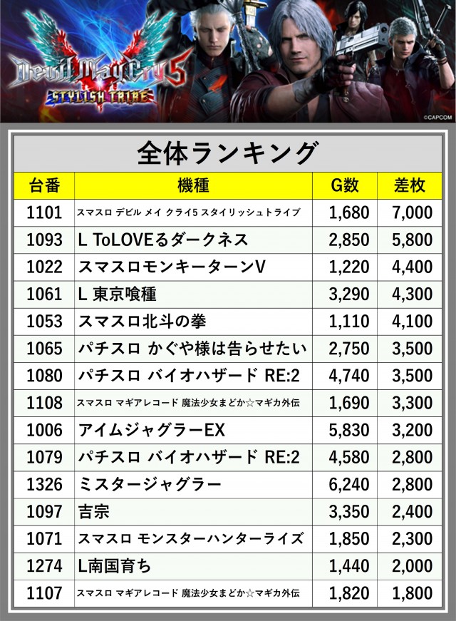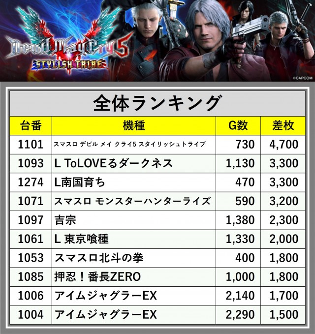 厳選された取材対象機種をはじめ、その他スロット全体から好記録が飛び出した!プレイヤーが楽しんだ1日を下記データにて振り返ってみて欲しい。