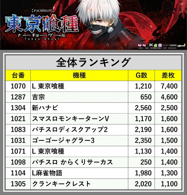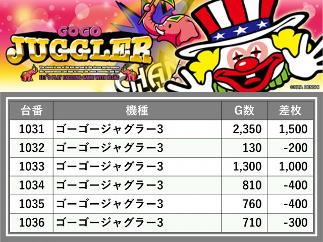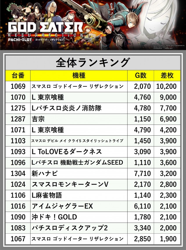 厳選された取材対象機種をはじめ、その他スロット全体から好記録が飛び出した!プレイヤーが楽しんだ1日を下記データにて振り返ってみて欲しい。
