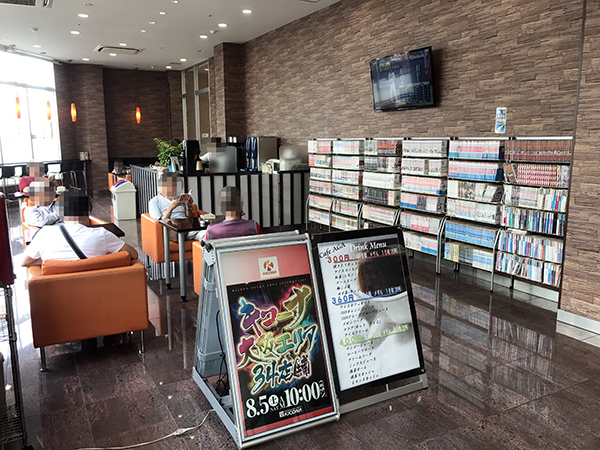 レストスペースにはたくさんの漫画本が用意されているだけでなく、マッサージチェアもありリフレッシュに最適。