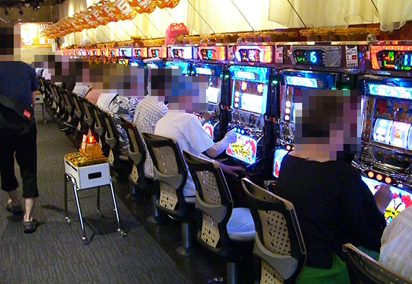 開店直後の傾向は前日と似ており、「バジリスク~甲賀忍法帖~絆」や「押忍!番長3」などが満席。