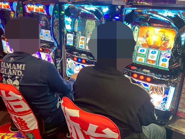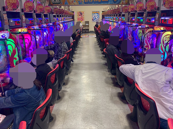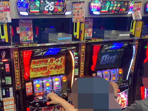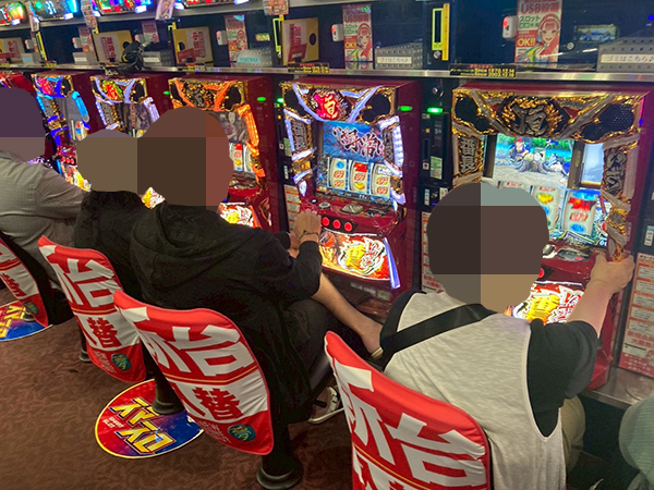 1000円/188枚パチスロの稼働も高い。楽しそうにレバーを叩くプレイヤーの姿を複数目撃している。