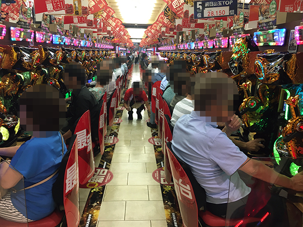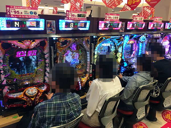 1円パチンコにもたくさんのプレイヤーが集合。様々な機種で活気が感じられ、空き台が見当たらないほどににぎわいを見せていた。