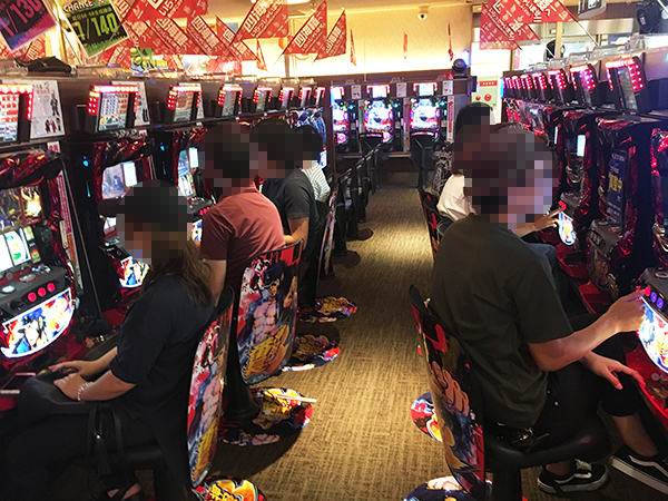 5円パチスロも朝から高稼働をキープ。好みの機種を選択し、真剣に台と向き合っているプレイヤーの姿を数多く見ることができた。