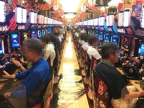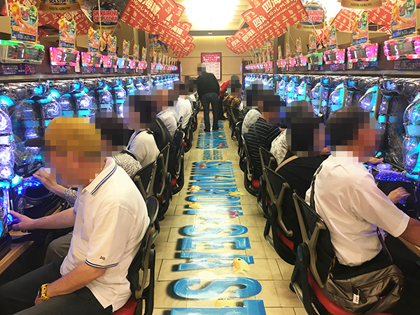 1円パチンコは機種を問わず、全体的に高稼働。特に海物語シリーズは好評で、空き台が出るのを待つほどの状況だった。