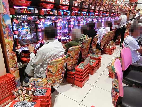 また、機種構成が多彩な2円パチンコの支持も厚い。老若男女問わず、多くのプレイヤーが楽しそうに遊技をおこなっていた。