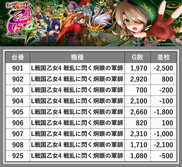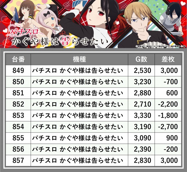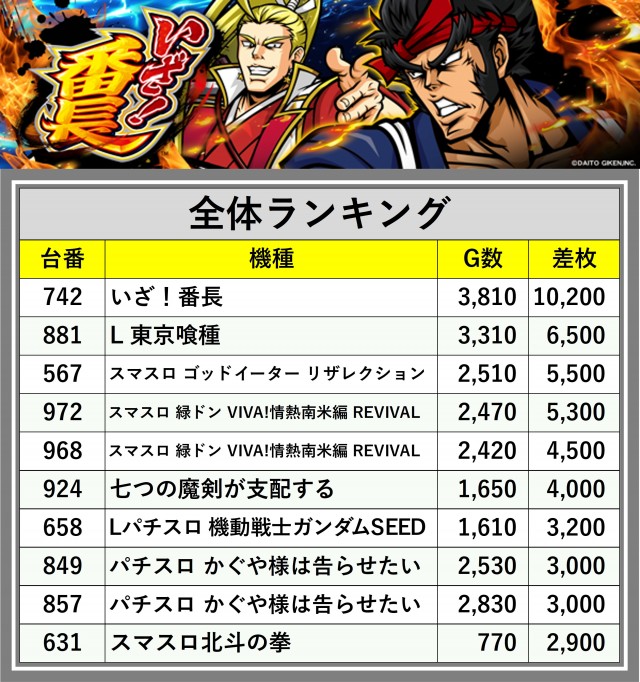 ※差枚数順に掲載しています