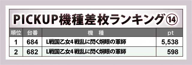 『L戦国乙女4 戦乱に閃く炯眼の軍師』4台もプラス率は5割に。684番台の+5千5百超という成績が光った。