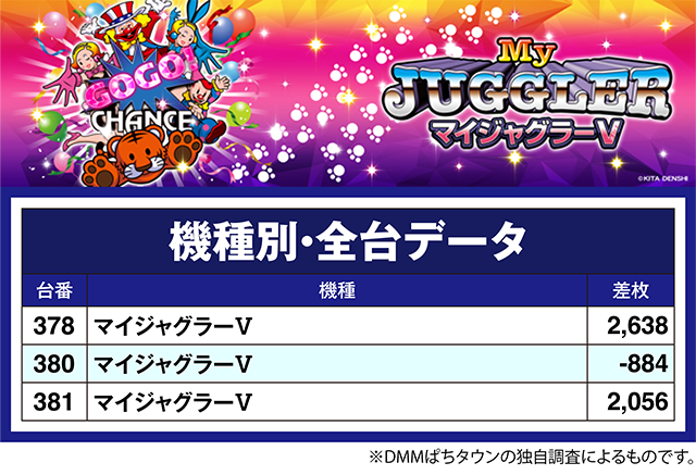 「マイジャグラーⅤ」の378番台と381番台が2,000ptオーバー!!