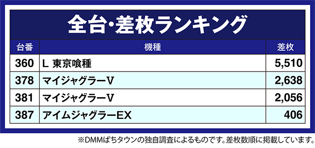 「アイムジャグラーEX」では、387番台がプラスとなった。