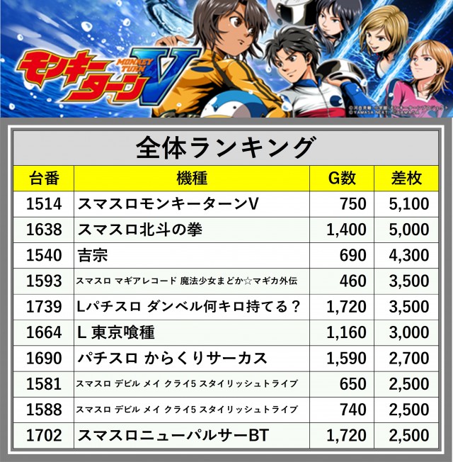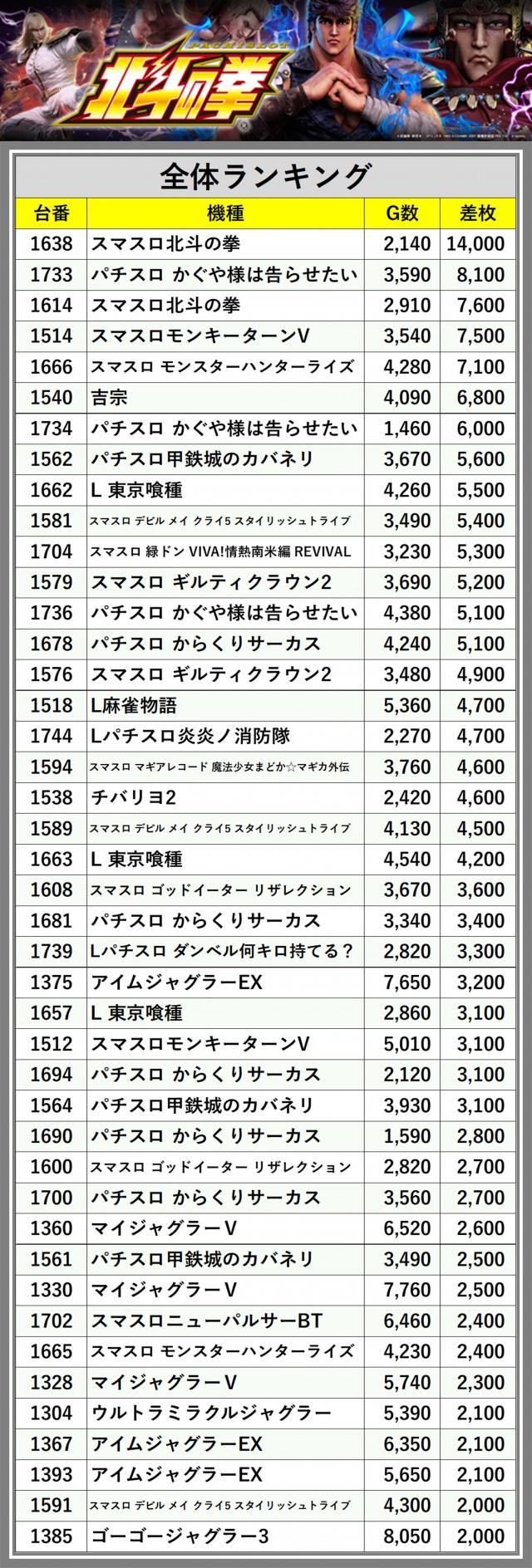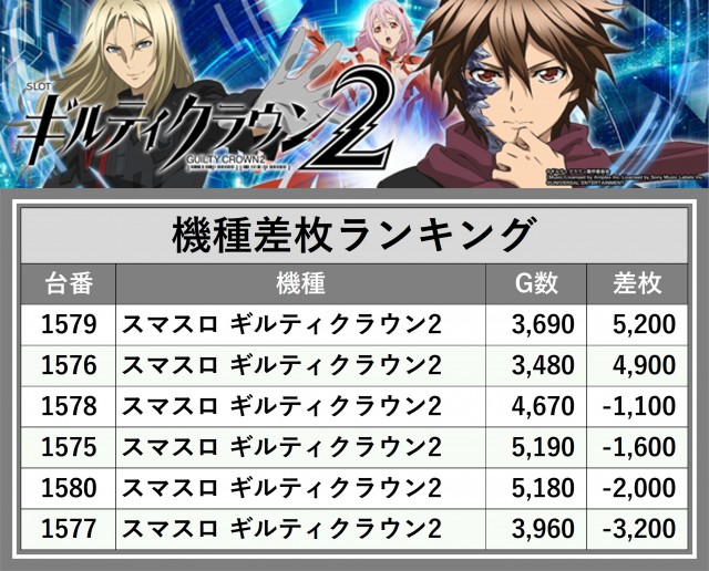 ※差枚数順に掲載しています