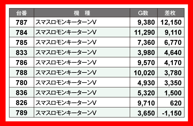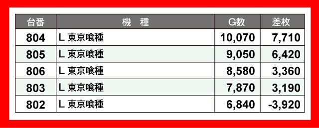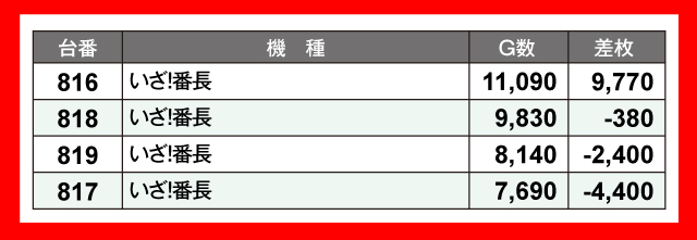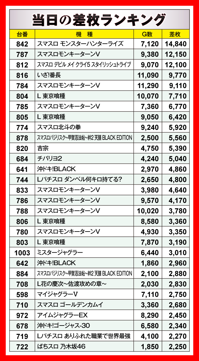 当日の差枚ランキング