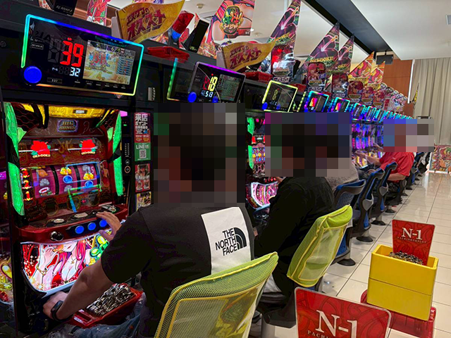 取材時のパチンコでは、「P北斗の拳 暴凶星」が満席となっており、明るい雰囲気に包まれていた。