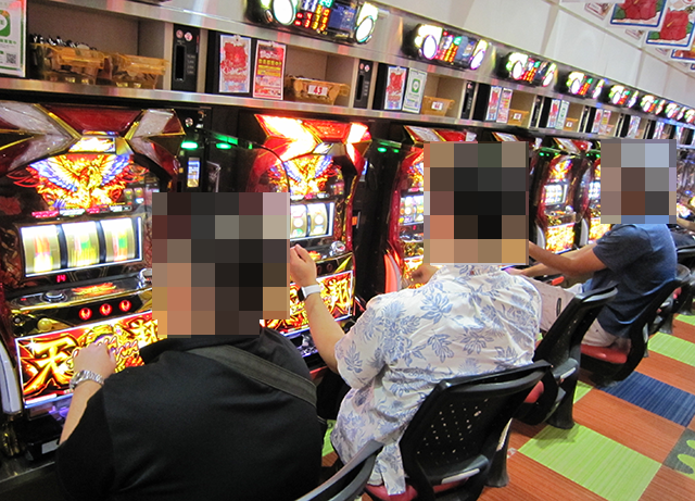 プレイヤーたちは持ち玉を使い、楽しそうに遊技を満喫中。