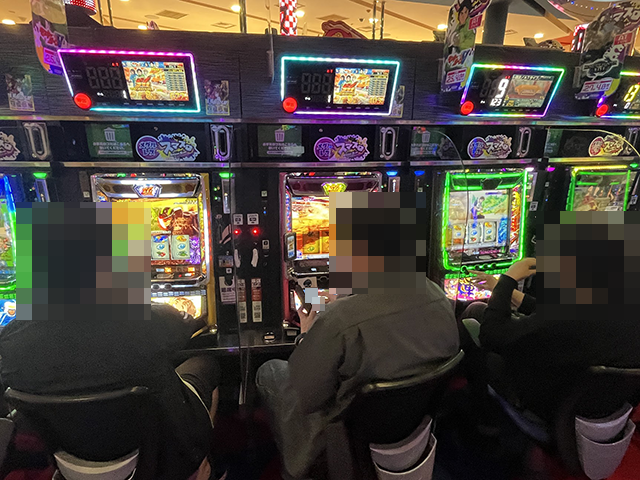 店内をまわっていくと、パチンコとパチスロの両方に活気があった。