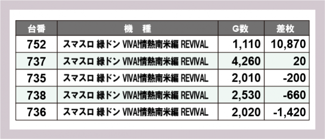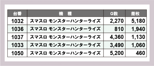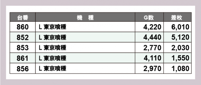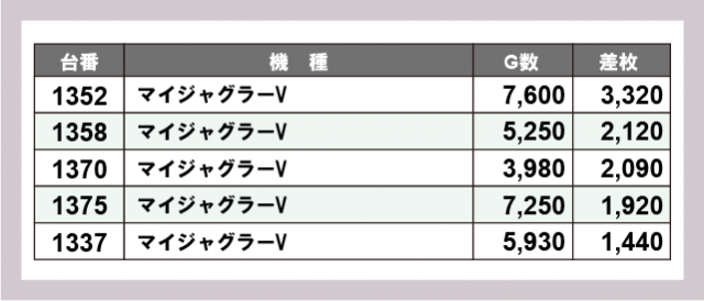 ※差枚数順に掲載しています