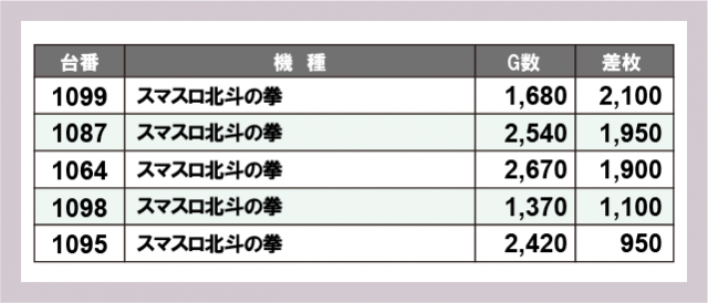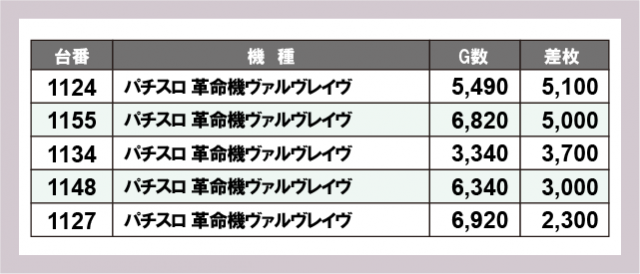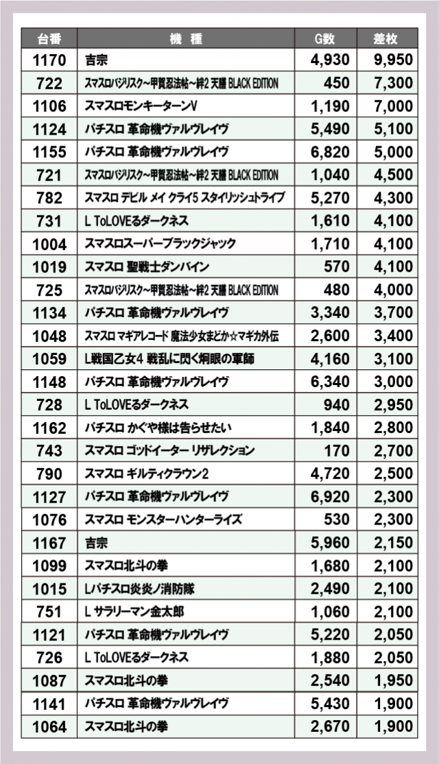 ※差枚数順に掲載しています