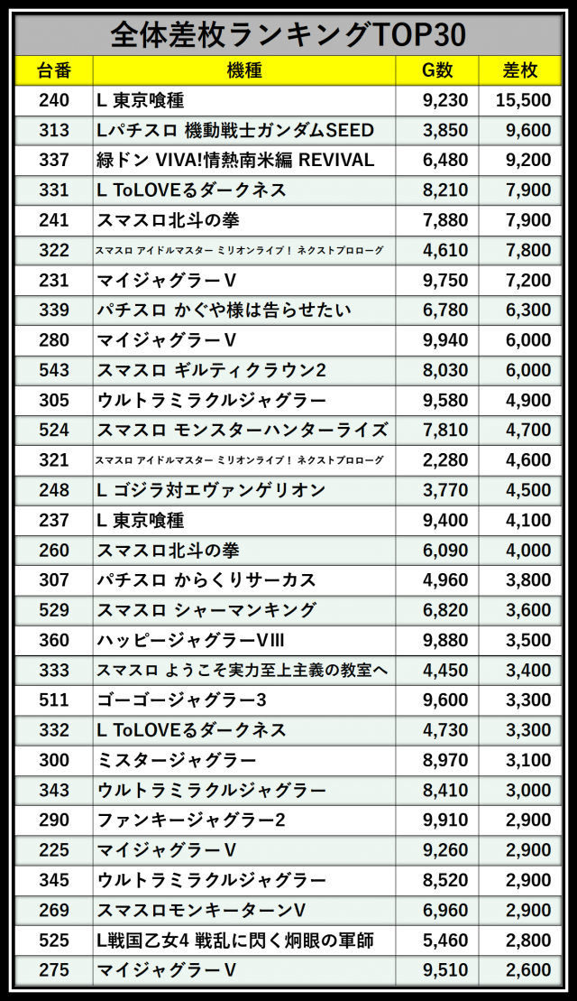 その結果の中から、ぱちタウンが注目すべきポイントを厳選してユーザーにお届け!プレイヤーが楽しんだ一日を下記データにて振り返ってみて欲しい。