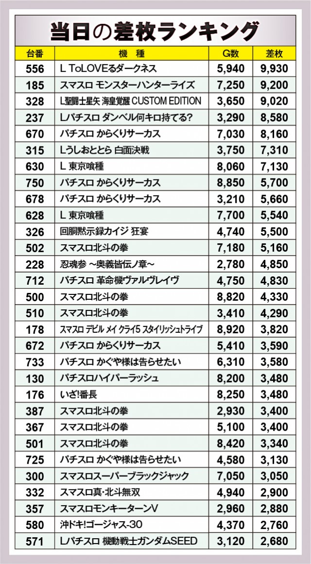 ※記事内の差枚表記はぱちタウン独自調査に基づくものです。ご了承ください。