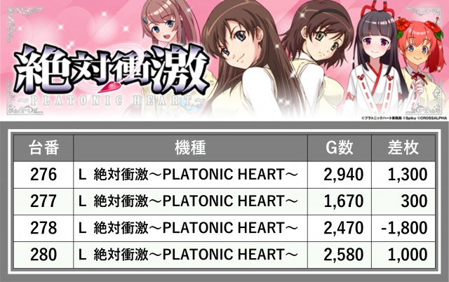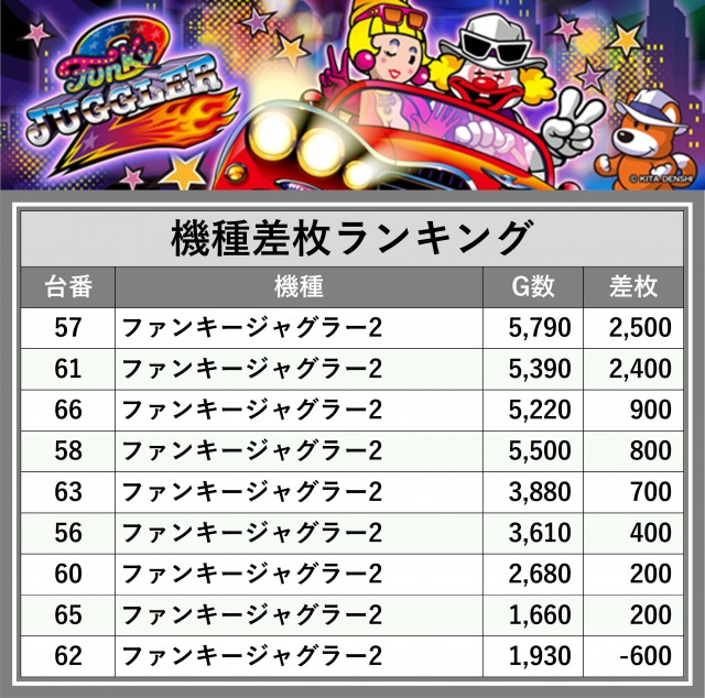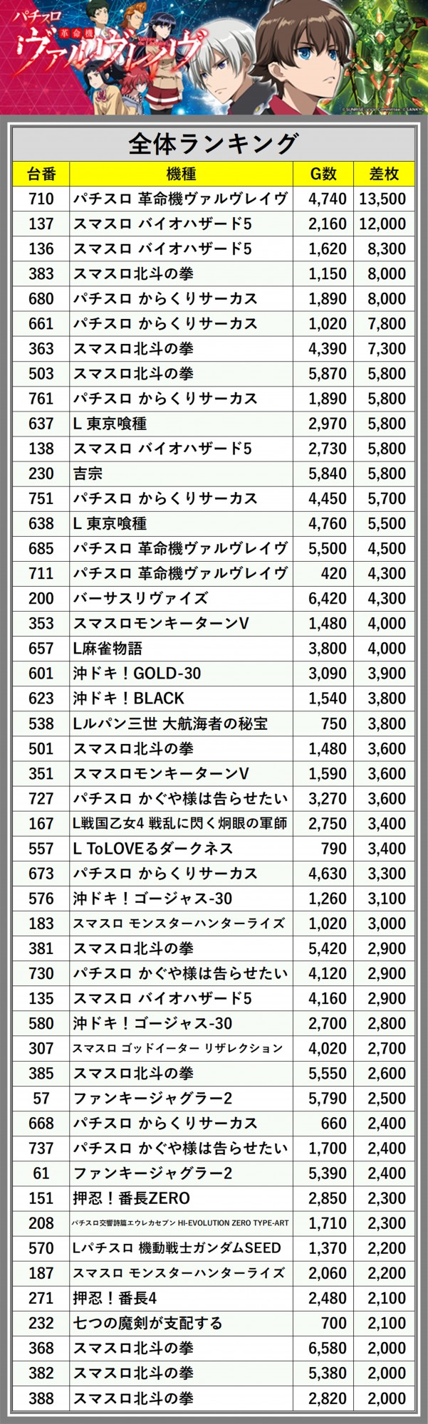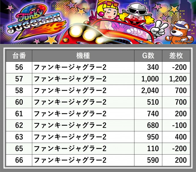 厳選された取材対象機種をはじめ、その他スロット全体から好記録が飛び出した!プレイヤーが楽しんだ1日を下記データにて振り返ってみて欲しい。