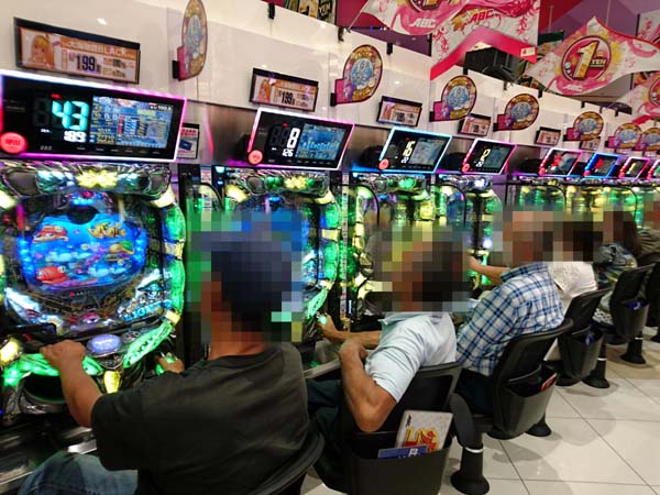 1円パチンコでは、「CR大海物語BLACK LIGHT」や「CRA大海物語3Withアグネス・ラム」などの海物語シリーズが人気を集めていた。全体的に年配プレイヤーが多く、和やかな雰囲気に包まれていた。