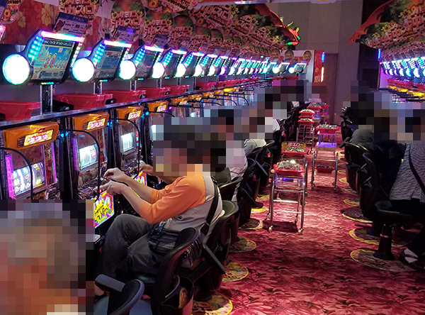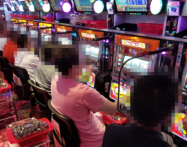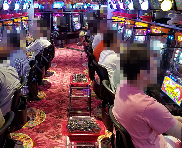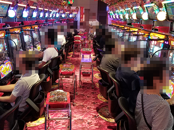 パチンコとパチスロを問わずにホール全体が大にぎわい。