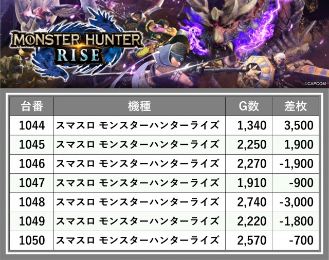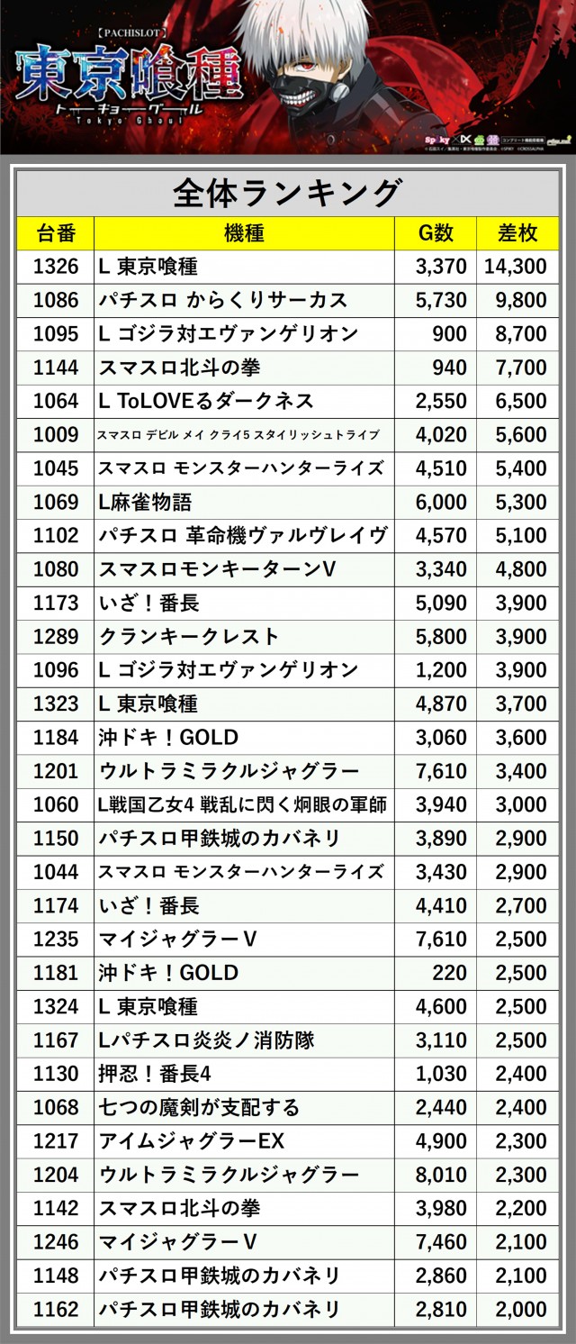 ※差枚数順に掲載しています