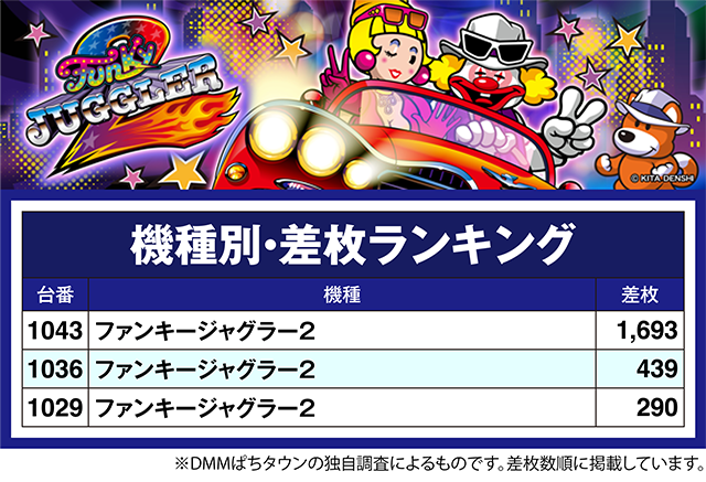 3台がプラスとなった「ファンキージャグラー2」でも、1,600ptを超えた台を確認している。