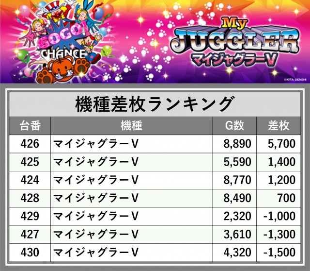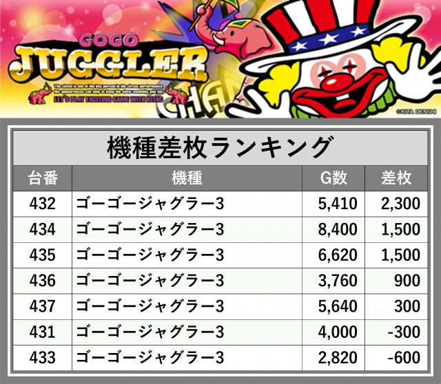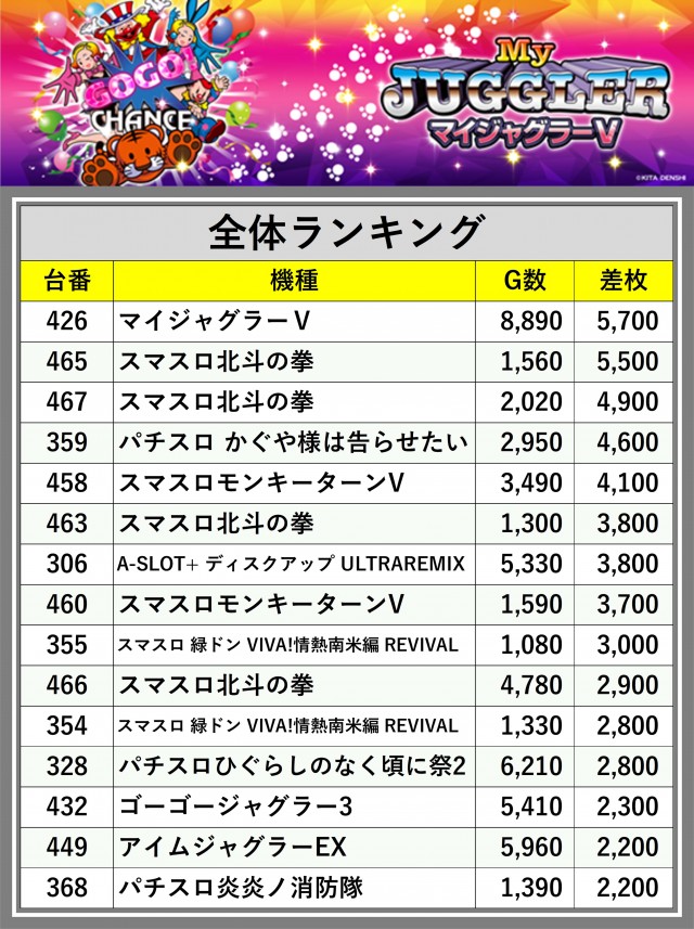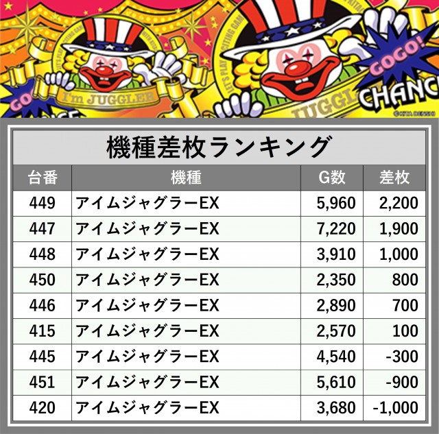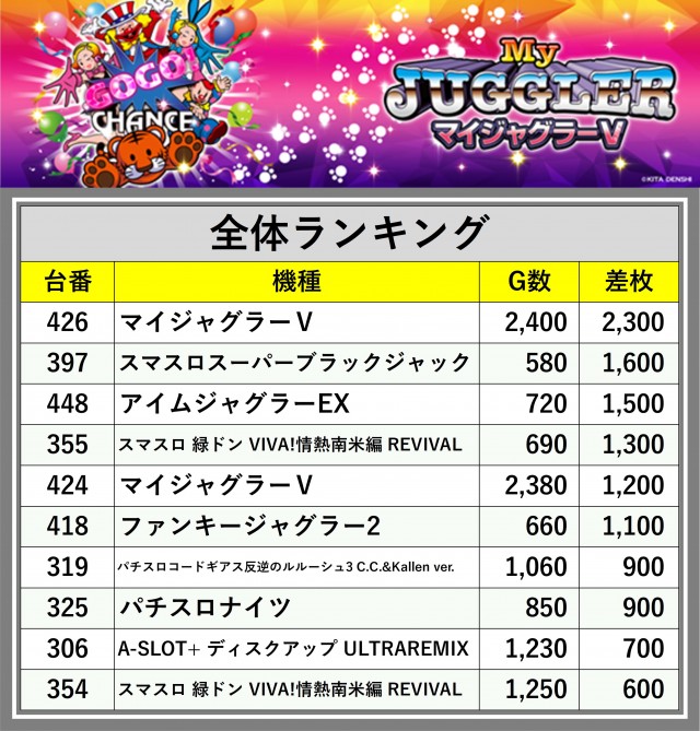 ※差枚数順に掲載しています