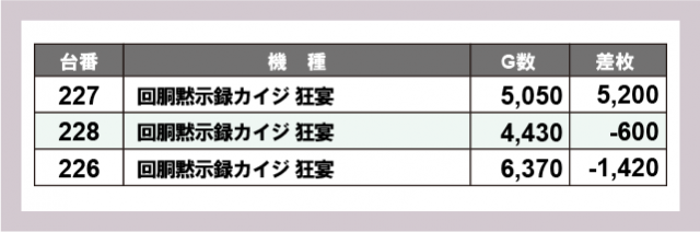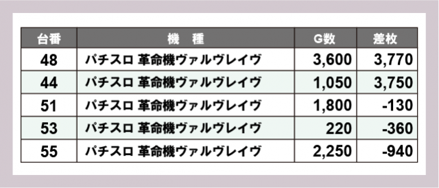 ※差枚数順に掲載しています