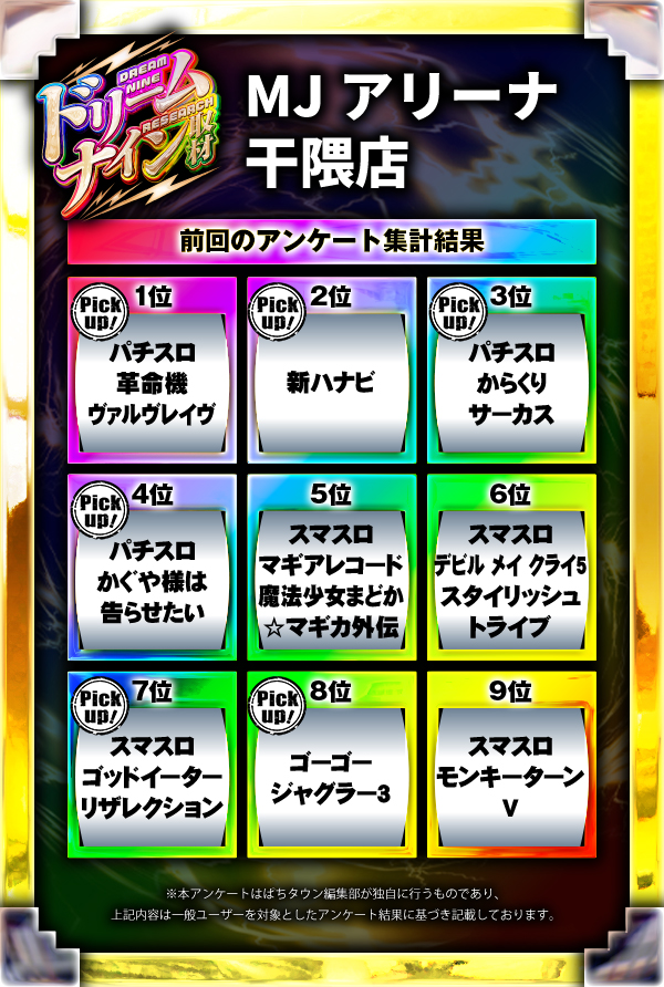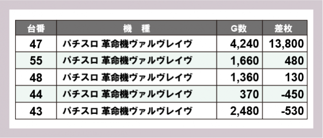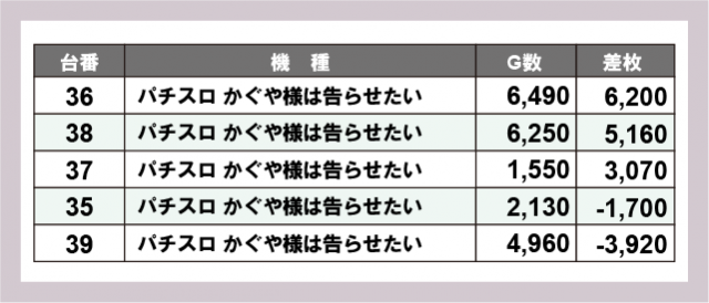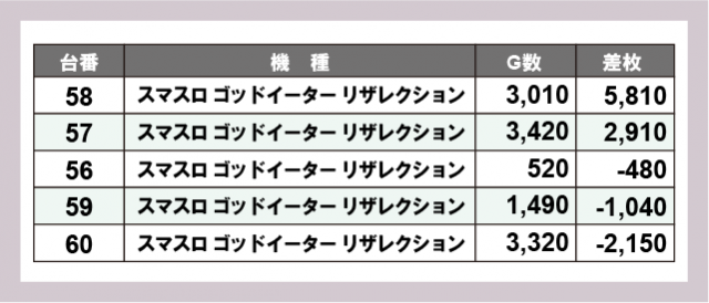 ※差枚数順に掲載しています