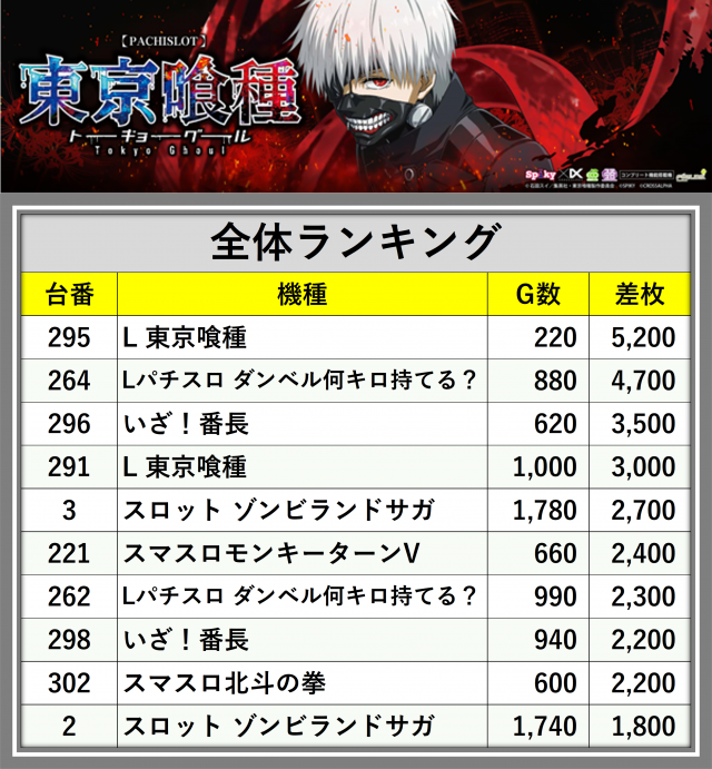 厳選された取材対象機種をはじめ、その他スロット全体から好記録が飛び出した!プレイヤーが楽しんだ1日を下記データにて振り返ってみて欲しい。