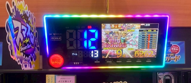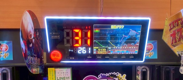 まずは20スロをチェック。前項の写真で分かる通り、表示枚数+6,000超となった『L 東京喰種』『吉宗』を皮切りに、スマスロにはハイスコアが続出していた。