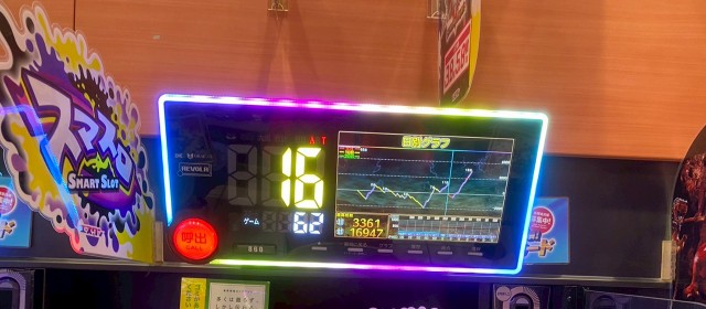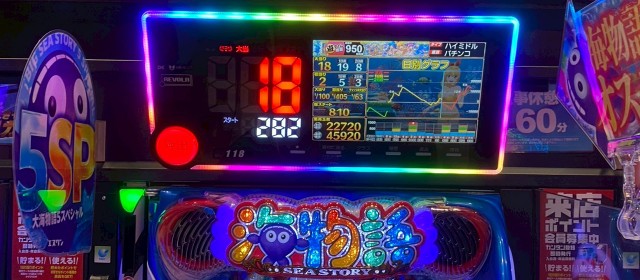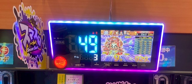 『パチスロ 革命機ヴァルヴレイヴ』 『スマスロモンキーターンⅤ』『スマスロ ゴッドイーター リザレクション』『パチスロ かぐや様は告らせたい』などの人気マシンから、新台の『スマスロ ギルティクラウン2』『いざ!番長』まで、台上カウンターには華々しい数字が並んでいた。