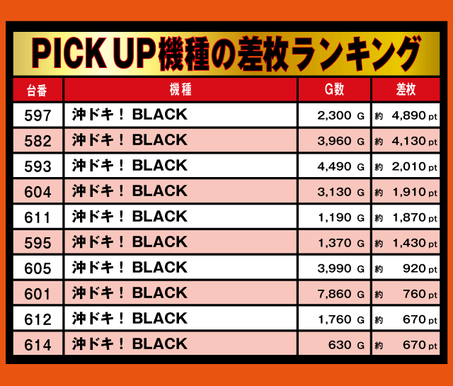 『沖ドキ!BLACK』は26台中10台がプラスで、+4,000ptオーバーが2台と優秀な成績をおさめた。