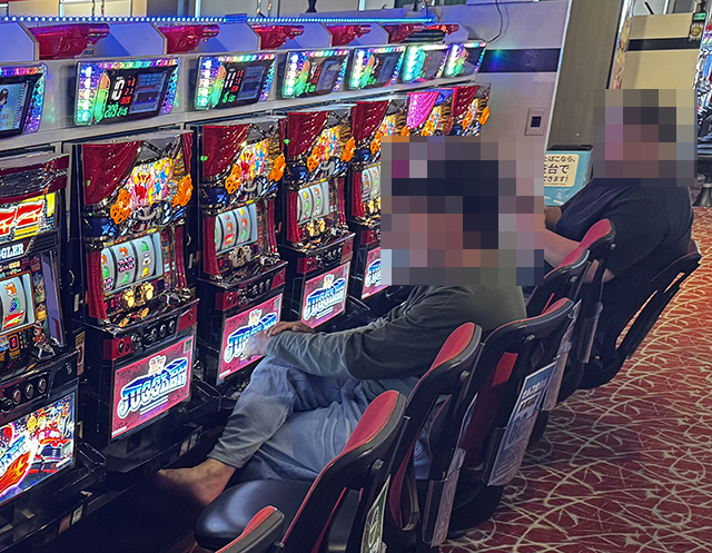 パチスロコーナーでは、ジャグラーシリーズをはじめ、あちこちで華やかなシーンがみられた。