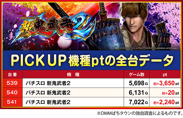 「PaPaOne」の「パチスロ 新鬼武者2」は、全台がプラス。