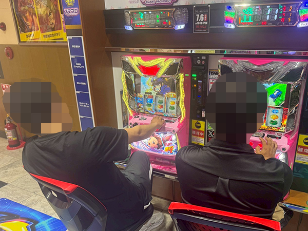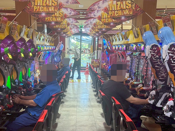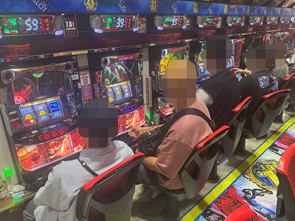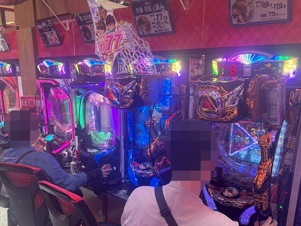 取材時は多くのプレイヤーが来店。パチンコ・パチスロともに、様々な機種が支持を得ていた。