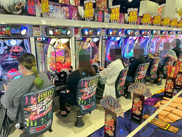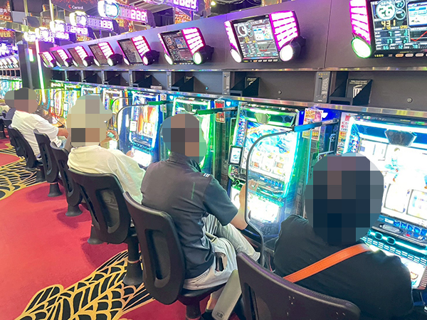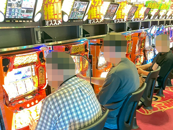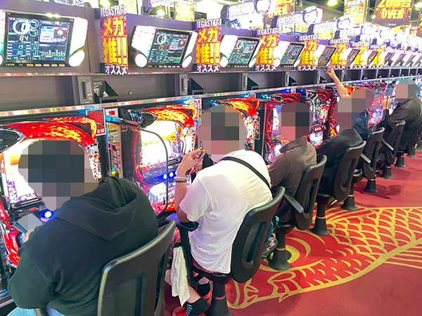 取材時は多くのプレイヤーが来店。パチンコ・パチスロともに、様々な機種が支持を得ていた。