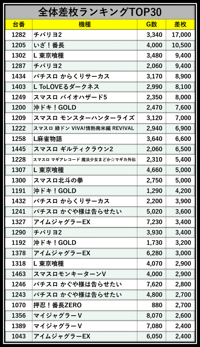 その結果の中から、ぱちタウンが注目すべきポイントを厳選してユーザーにお届け!プレイヤーが楽しんだ一日を下記データにて振り返ってみて欲しい。