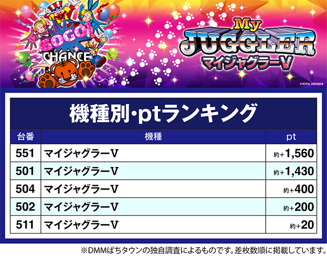 「ゴーゴージャグラー3」も活気があり、570番台が約+2,000ptオーバー。