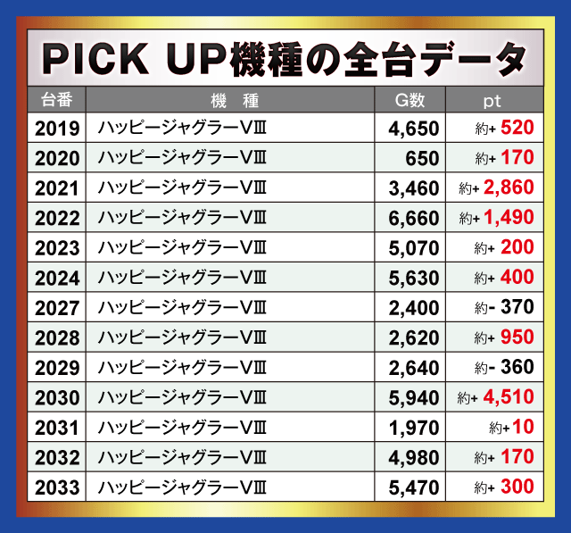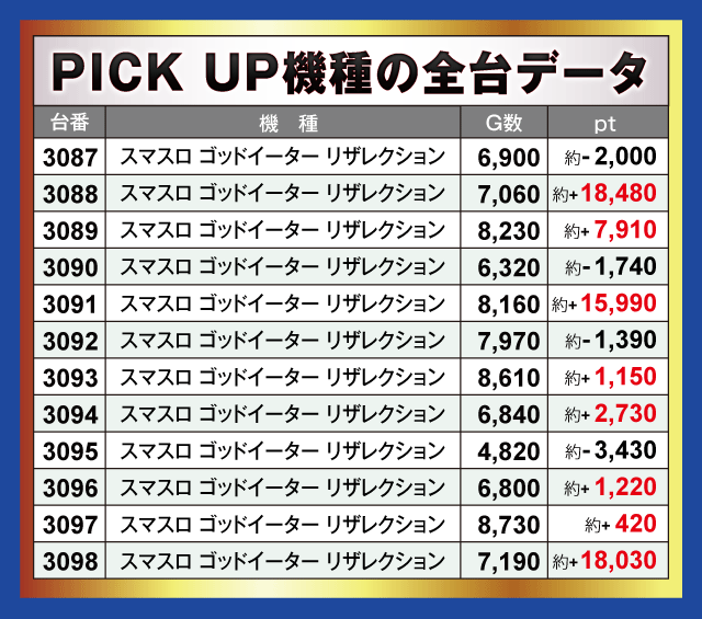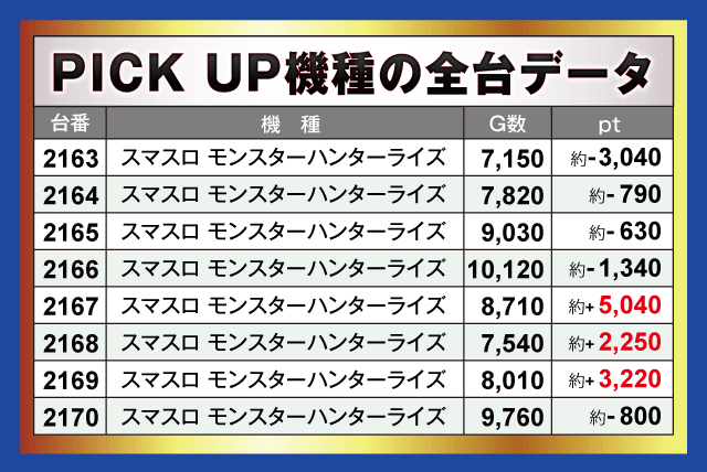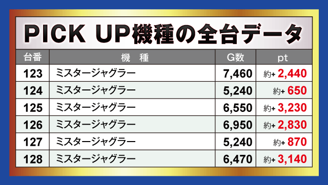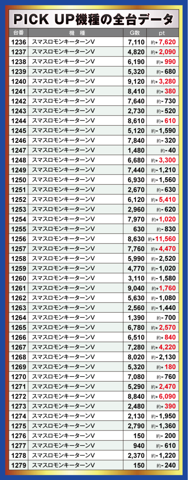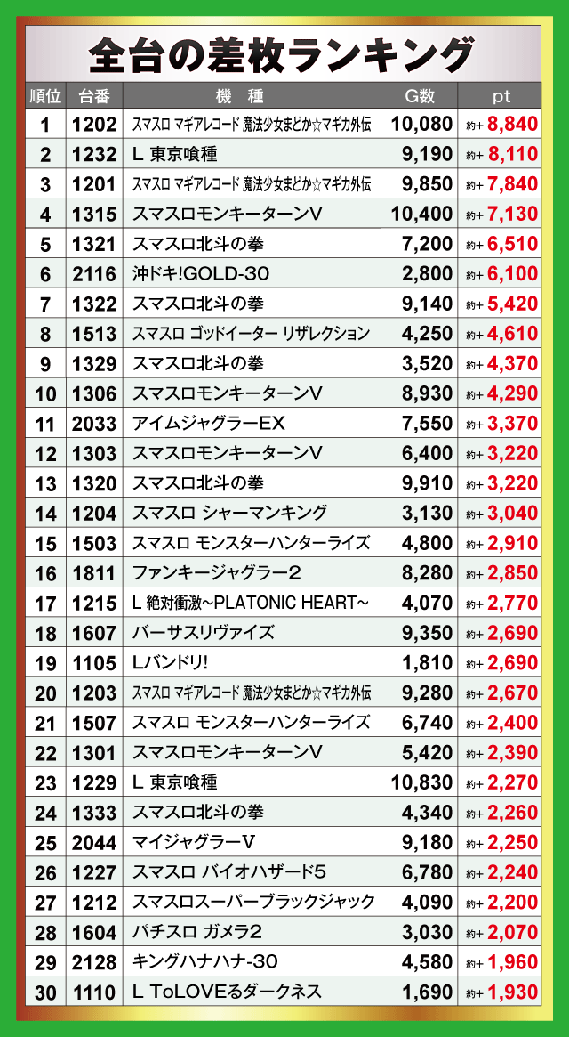 また、その他の機種をチェックすると、『スマスロモンキーターンV』から+7,000pt超、『スマスロ北斗の拳』と『沖ドキ!GOLD-30』から+6,000pt超を確認。人気機種を中心にタイプを問わず広範囲に渡ってチャンスが潜んでいたのは間違いないだろう。