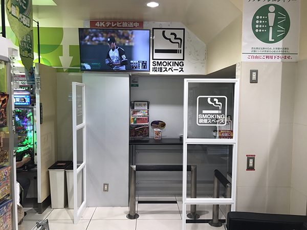 ホール内には喫煙スペースが完備。消臭スプレーやリフレッシュシャワーなども用意されており、快適な環境をつくる姿勢にも好感が持てた。