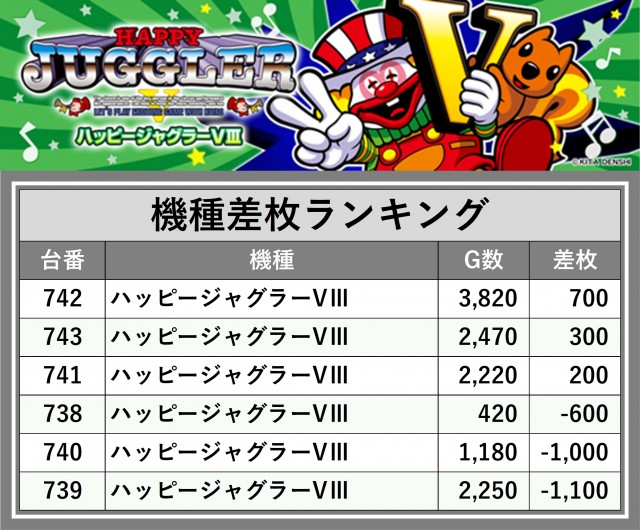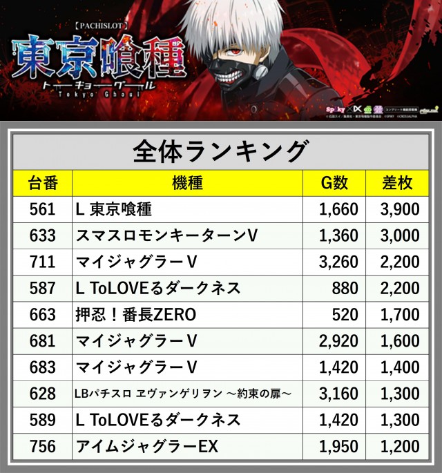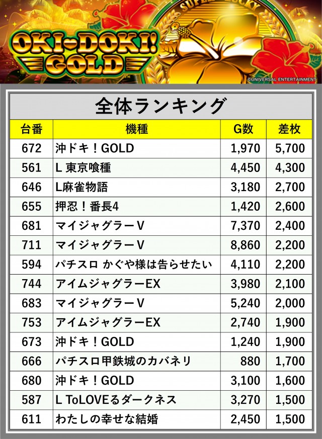 厳選された取材対象機種をはじめ、その他スロット全体から好記録が飛び出した!プレイヤーが楽しんだ1日を下記データにて振り返ってみて欲しい。