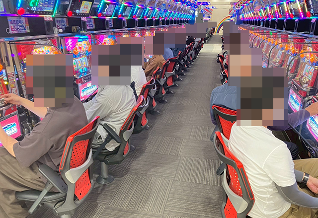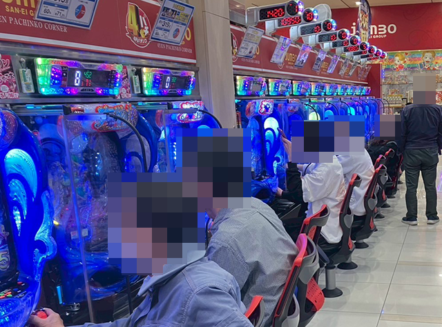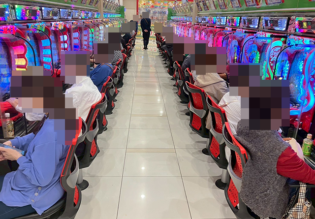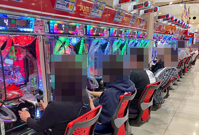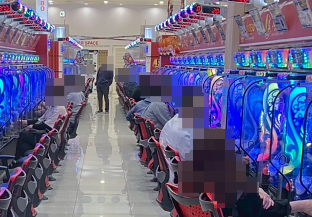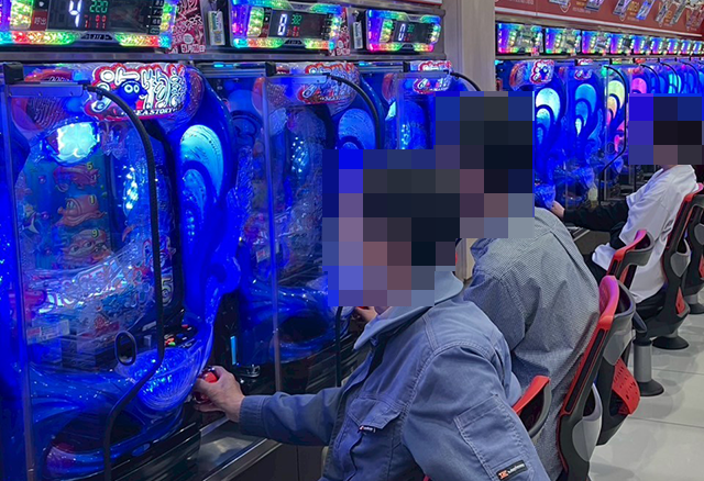 持ち玉を使い、楽しそうに遊技をおこなっているプレイヤーを確認。