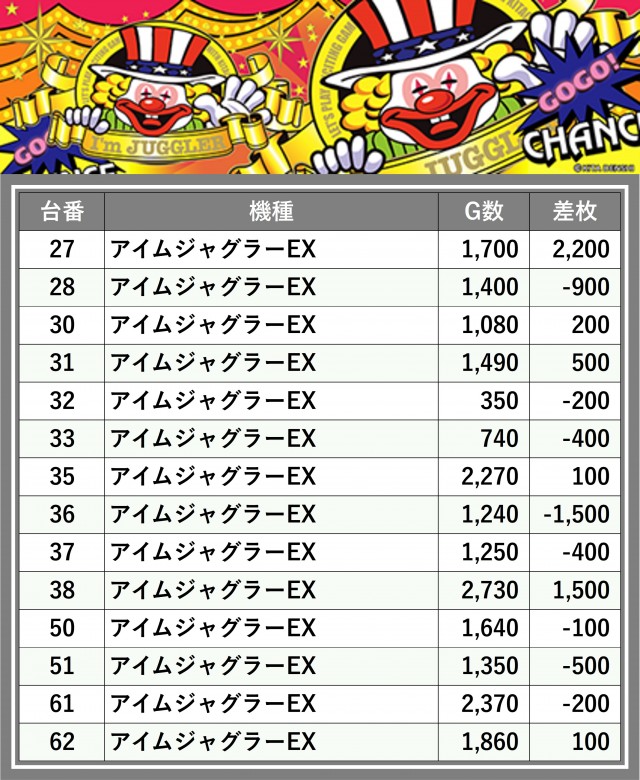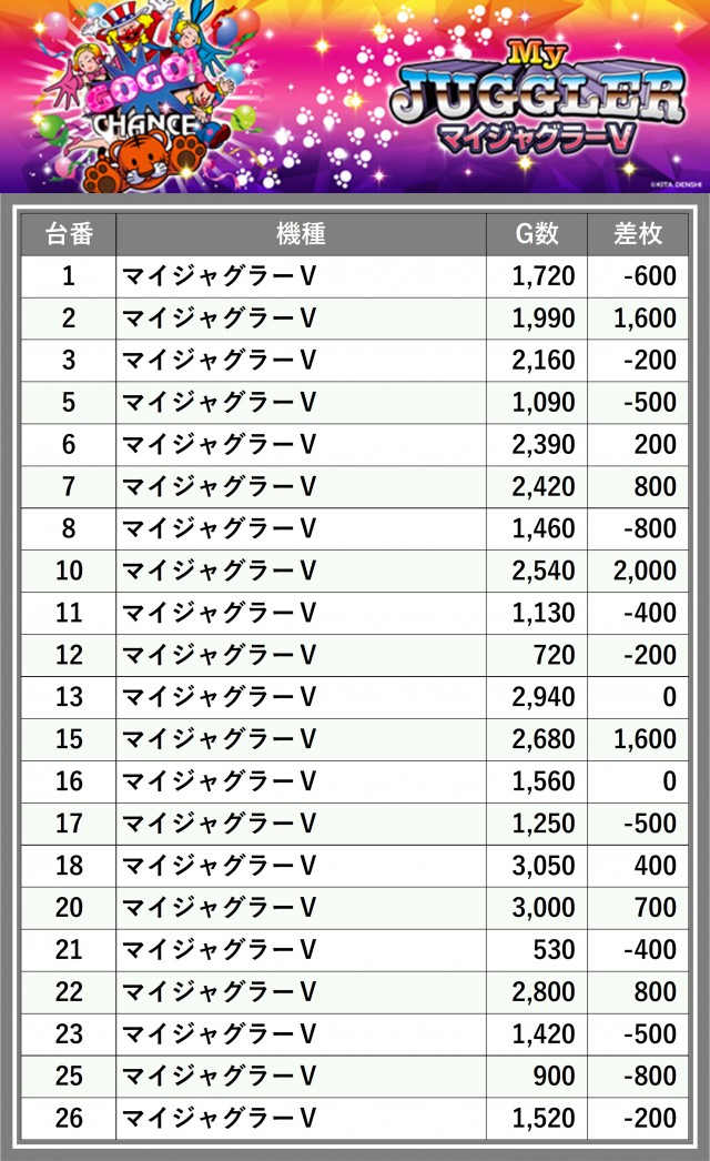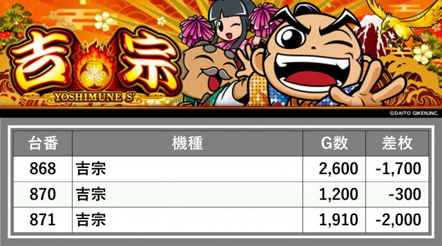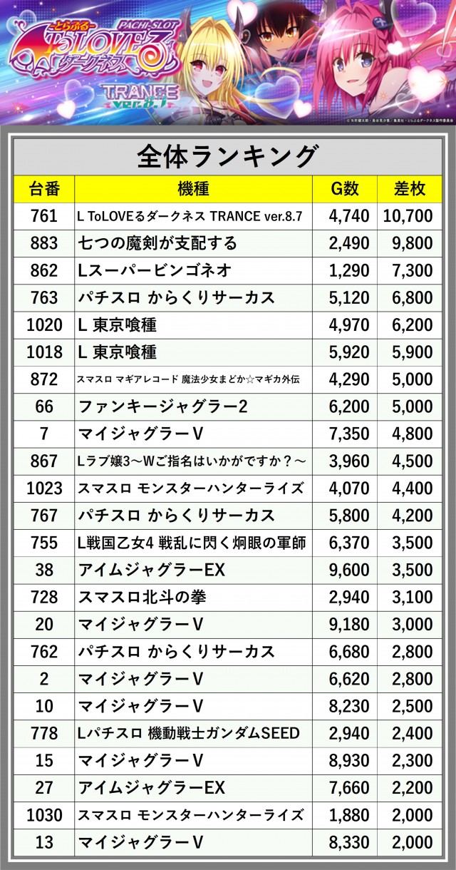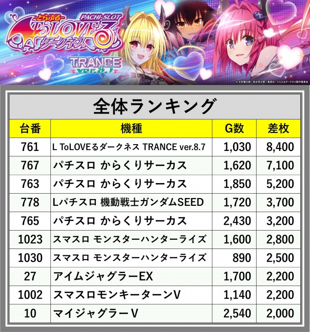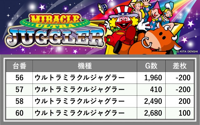 厳選された取材対象機種をはじめ、その他スロット全体から好記録が飛び出した!プレイヤーが楽しんだ1日を下記データにて振り返ってみて欲しい。